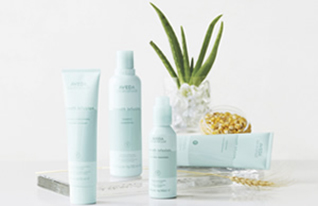 パーフェクトなスムージングヘアのためのヘアケアライン「スムーズ インフュージョン」。オーガニック認定ババスベタイン(*)やタマヌオイル(テリハボク種子油)などの植物由来成分が、髪と頭皮をやさしく洗い上げ、まとめやすく流れるような美しい髪に仕上げます。