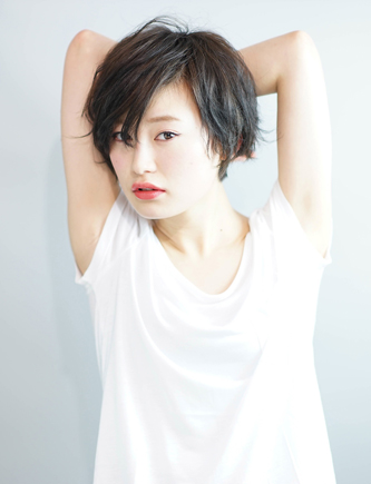 黒髪ビタースウィートショート 毛束からモードなエッセンスが滴るセミウェットなビタースウィートスタイル! スタイリスト 山内 健嗣Takeshi Yamanouchi スパイスアヴェダ サロン&スパ玉川店